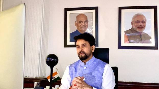 New Delhi : Union Youth Affairs & Sports Minister Anurag Thakur launched the official cheer song for the Tokyo-bound Indian contingent at a virtual event on July 14, 2021.