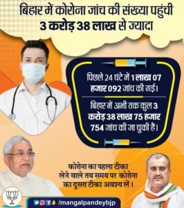 Patna : Active cases further dropped to 1,221 in Bihar including 206 in Patna on July 6 as 143 more persons tested positive for Covid-19 in the state on July 5, 2021, up from 76 on July 4, 2021. The Active cases count in Bihar was 1,304 on July 5, 2021. Bihar recorded 5 new deaths due to Covid-19 in last 24 hours taking the toll to 9,611 in the state on July 6, 2021.