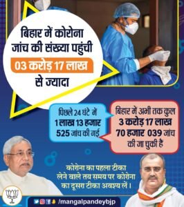 Patna : Active cases further dropped to 3,803 in Bihar including 390 in Patna on June 17 as only 385 more persons tested positive for Covid-19 in the state on June 16, 2021. Active cases count was 3,990 in Bihar on June 16, 2021, with 370 persons testing positive for Covid-19 on June 15, 2021. Bihar also reported 4 new deaths due to Covid-19 in last 24 hours taking the toll to 9,527 in the state on June 17, 2021. In an important development, a total of 6,62,507 persons were vaccinated against Covid-19 in Bihar in last 24 hours.