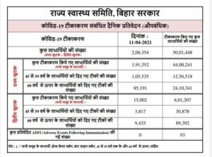 Patna Active cases jumped to 14,695 in Bihar including 5,802 in Patna on April 11, 2021, as 3,756 more persons including 1,382 from Patna, 302 from Bhagalpur, 290 from Gaya, 191 from Muzaffarpur, 165 from Jehanabad, 113 from Begusarai, 108 from Siwan, 102 from Munger, 85 from Arwal, 79 from Purnia, 76 from Saharsa, tested positive for Covid-19 on April 10, 2021. Bihar had recorded 3,469 new Covid cases on April 10, 2021.