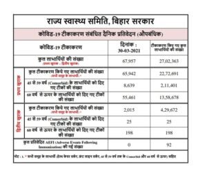 With this, the Covid-19 cases recorded so far in Bihar climbed to 2,65,268 cases on March 30, 2021, of which 2,62,238 patients have been declared cured including 105 in last 24 hours with the recovery rate (RR) improving to 98.86%. Bihar has tested 2,36,50,955 samples so far including 29,924 samples on March 29, 2021.