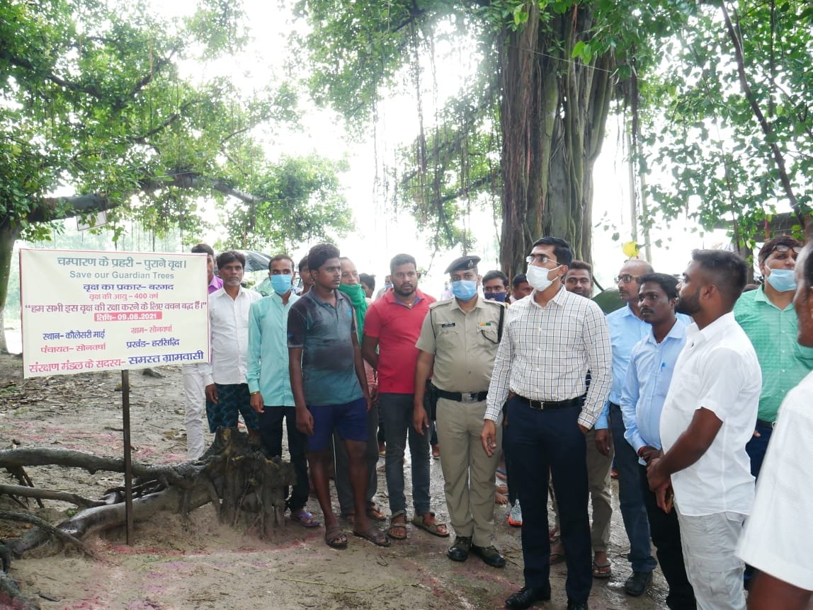 East Champran DMShirshat Kapil Ashok said that at least 1,450 trees ( 70 to 400 years old) have been identified by the district administration andnotified as Guardian Trees. The administration has started work totake care of these trees. Besides, an App has been specially designed and named ” Prayawaran Pprahari” by the administration in which the listed old trees have been given Geo tag number, name, and locations besides their other details for information of the people. This App will display the social and historical importance associated with these old trees..