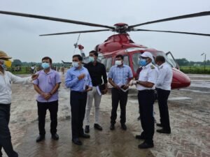 After the aerial survey of the flood affected made by Bihar CM Nitish Kumar on July 6, 2021, Sanjay Agrawal, OSD, State Disaster Management Department (DMD), Adesh Tetermare, Director, State Agriculture Department, and DM, East Champaran, Shirshat Kapil Ashok, conducted aerial survey of flood hit areas of East Champaran District on July 8, 2021, to assess the damages caused to the paddy crops, paddy seedlings, roads, NH 28 A, NH 28 B, and houses.