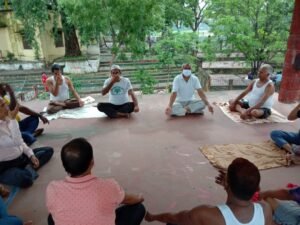 Ara : Under the banner of Lok Jagrirti, Ara, and Arya Samaj, a day long free Yoga camp was organized at Ara Ramana Maidan and Ram Leela Maidan on June 21, 2021, to mark the International Yoga Day. Around two thousand men, women, boys, girls, and school children attended the camp. Vijendra Kumar Singh and others imparted Yoga training to the participants.