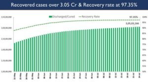 Out of the people infected since the beginning of the pandemic, 3,05,03,166 people have already recovered from Covid- 19 last 24 hours. and this constitutes an overall recovery rate of 97.35%. India logged 546 new deaths due to Covid-19 in last 24 hours taking the toll to 4,20,016 on July 24, 2021.