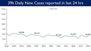 New Delhi : India logged 39,097 new Covid-19 cases in last 24 hours, exceeding the daily recoveries, taking the tally of cases registered so far in the country to 3,13,32,159 at 8 am on July 24, 2021. Less than 50,000 Daily New Cases have been reported for 27 consecutive days. A total of 35,087 Covid-19 patients were declared cured / discharged in last 24 hours taking the tally to 3,05,03,166 in the country on July 24.