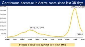 The country has also been witnessing a continuous fall in the active caseload. The country’s Active Caseload on June 20, 2021, was 7,29,243, a net decline of 30,776 cases in last 24 hours and accounted for only 2.44% of the total Positive Cases ( 2,98,81,965) on June 20, 2021.