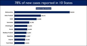 The Covid-19 toll in India onĀ April 20, 2021, was : Maharashtra (60,824), Tamilnadu (13,157), Karnataka (13,497), Delhi (12,361), Andhra Pradesh (7,437), Uttar Pradesh (9,997), West Bengal (10,606), Gujarat (5,494), Madhya Pradesh (4,636), Rajasthan (3,204), Punjab (7,985), Telengana (1,856), J&K (2,063), Haryana (3,448), Bihar (1,790), Odisha (1,948), Jharkhand (1,502), Assam (1,142), Uttarakhand (1,892), Kerala (4,950), Chhattisgarh (6,083), Puducherry (713), Goa (900), Tripura (394), Chandigarh (417), Andaman & Nicobar (64), Himachal Pradesh (1,203), Ladakh (133), Manipur (377), Nagaland (94), Meghalaya (154), Arunachal Pradesh (56), Sikkim (136), Mizoram (12), Dadra and Nagar Haveli and Daman & Diu (4), and Lakshadweep (1).