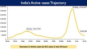 India’s Active Caseload was 4,54,118 on July 11, 2021, a drop of 915 cases in last 24 hours, and accounted for only 1.47% of the country’s total Positive Cases.