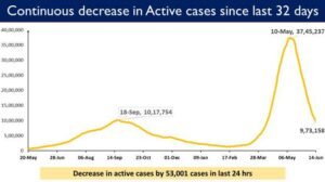 India has also been witnessing a continuous fall in the active caseload. The country’s Active Caseload was 9,73,158 on June 14, 2021. The Caseload has declined below 10 lakh mark after 66 days. A net decline of 53,001 was reported in the last 24 hours and active cases accounted only 3.30% of the country’s total Positive Cases on June 14, 2021, according to Uninn Health Ministry figure.
