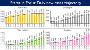 Five States:Maharashtra, Chhattisgarh, Uttar Pradesh, Karnataka, and Kerala cumulatively account for 65.02% of India’s total Active Cases. Maharashtra alone accounts for 38.09% of the total active caseload of the country, according to a PIB release.