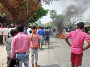 After killing Pawan Gupta, the four assailants tried to escape from the spot but one of them was caught by the villagers with his motorcycle on the road . The mob torched his motorcycle, thrashed him, and locked him in a room to hand him over to police. The irtae villagers blocked Matiarwa –Hasidhi road protesting the cold blooded murder of Pawan Gupta.
