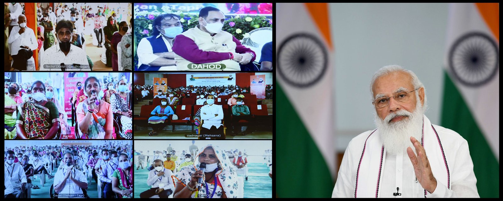 New Delhi : Prime Minister Narendra Modi interacted with beneficiaries of Pradhan Mantri Garib Kalyan Anna Yojana in Gujarat on August 3, 2021, via video conferencing. A public participation programme was launched in the state to create further awareness about the scheme.
