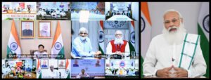 New Delhi : Prime Minister Narendra Modi interacted with participants of Toycathon-2021 on June 24, 2021, via video conferencing. Union Ministers Piyush Goyal and Sanjay Dhotre were present on the occasion.