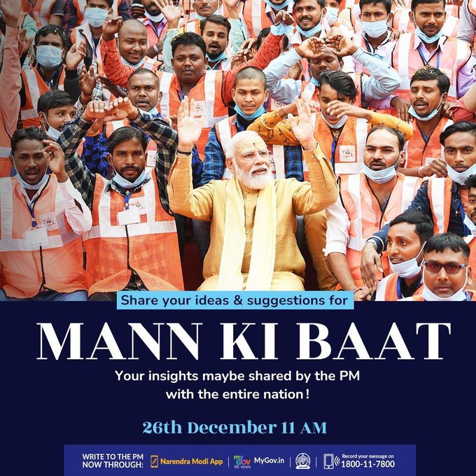 I have been receiving several inputs for this month’s #MannKiBaat on the 26th, which will be the last one of 2021. The inputs cover so many different areas and celebrate the life journeys of several people working to bring grassroots level changes. Keep sharing your views…