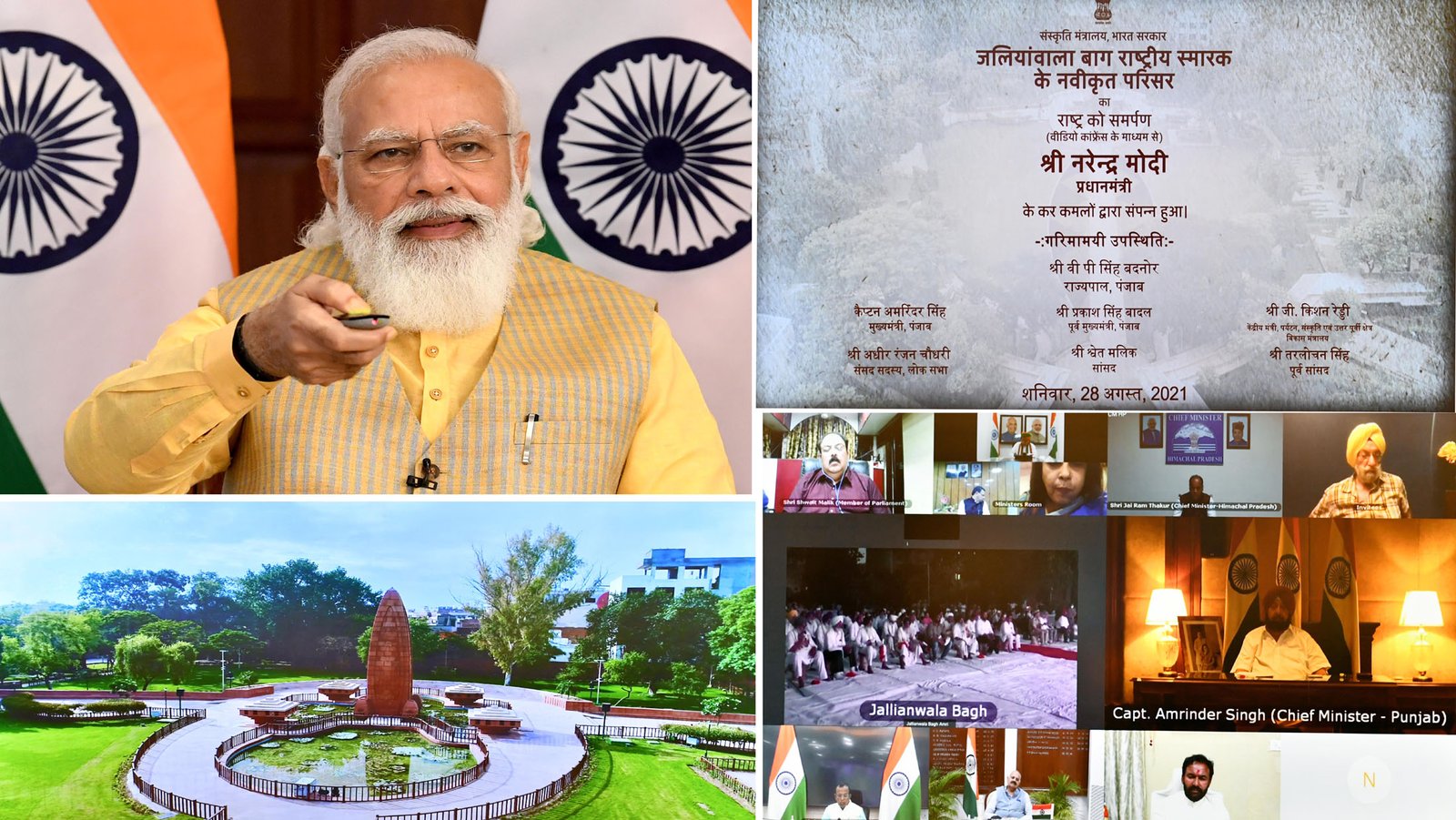 New Delhi : Prime Minister Narendra Modi dedicated the renovated complex of Jallianwala Bagh Smarak to the nation through video conference. During the event, he also inaugurated the Museum Galleries at the Smarak. The event showcased the multiple development initiatives taken by the government to upgrade the complex. The PM bowed to the brave land of Punjab and to the holy soil of Jallianwala Bagh. He also saluted those children of Mother Bharati who were subjected to unprecedented inhumanity just to extinguish the flame of freedom.