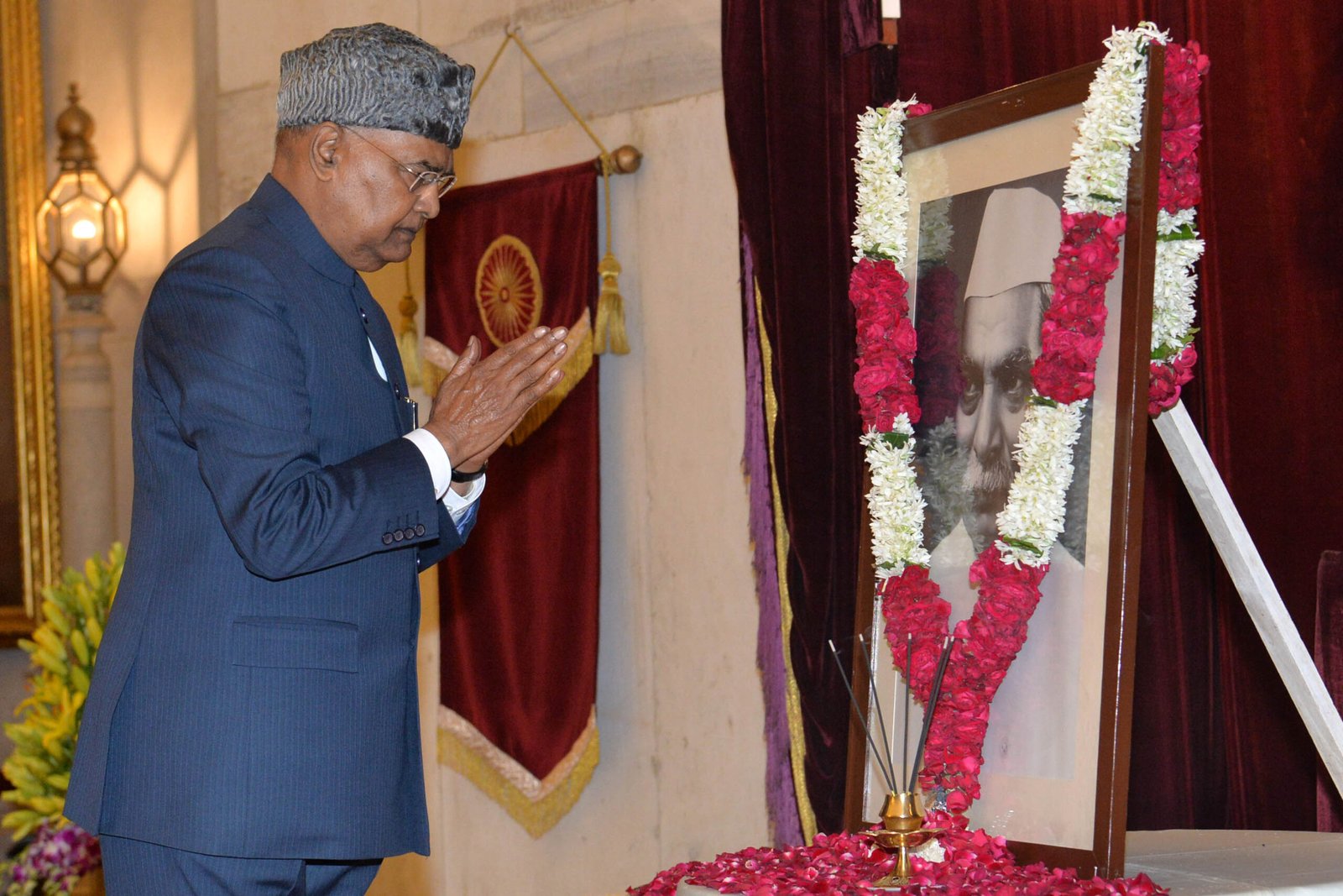 New Delhi : The President of India Ram Nath Kovind on December 3, 2021, paid homage to Dr Rajendra Prasad, the first President of India, on his birth anniversary at Rashtrapati Bhavan. The President and officials of Rashtrapati Bhavan paid floral tributes before a portrait of Dr Rajendra Prasad, according to a PIB release.