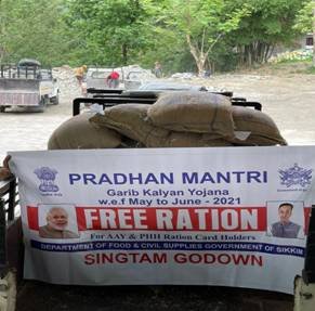 Distribution started implementation of “Pradhan Mantri Garib Kalyan Anna Yojana” (PM-GKAY III) for two months period i.e. May and June 2021 in same pattern as earlier by providing an additional quota of free-of-cost foodgrains (Rice/Wheat) at a scale of 5 Kg per person per month, over and above their regular monthly NFSA entitlements to about 80 Crore beneficiaries covered under both categories of NFSA, namely Antyodaya Anna Yojana (AAY) and Priority Householders (PHH).