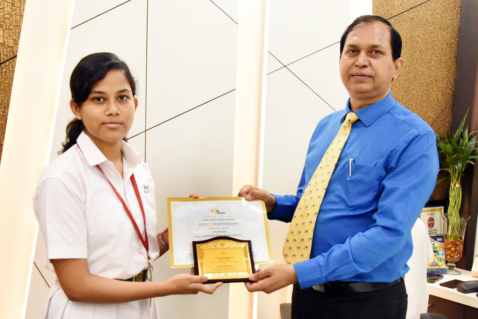 Bokaro (Jharkhand) : Tamanna Ray, a Class IX student of DPS Bokaro, Jharkhand, bagged the 2nd Runners Up trophy at All India National Geography Project Competition, 2021. The prestigious competition was organised by Kota (Rajasthan) based Geo Genius, a nationwide platform to cultivate academic excellence in Geography.