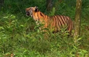 Motihari : A Bengal Tiger has created terror in riverine areas of Burhi Gandak near Pakaridayal, a Sub-divisional Headquarters town, in East Champaran District in North Bihar. The Tiger strayed out of Valmikinagar Tiger Reserve (VTR) in neighbouring West Champaran District about four days back and has reached riverine area near Pakaridayal in East Champaran District covering a distance of 125 km triggering panic among the people. The Tiger has not caused any harm to anyone so far.