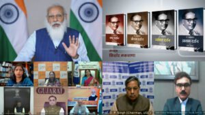 New Delhi : Prime Minister Narendra Modi addressed the Association of Indian Universities’ 95th Annual Meet and National Seminar of Vice-Chancellors on April 14, 2021, through video conferencing. He also launched four books related to Babasaheb Dr B R Ambedkar authored by Kishor Makwana. Governor, Chief Minister and education Minister of Gujarat and Union Education Minister were among those present on the occasion. The event was hosted by Dr Babasaheb Ambedkar Open University, Ahmedabad.